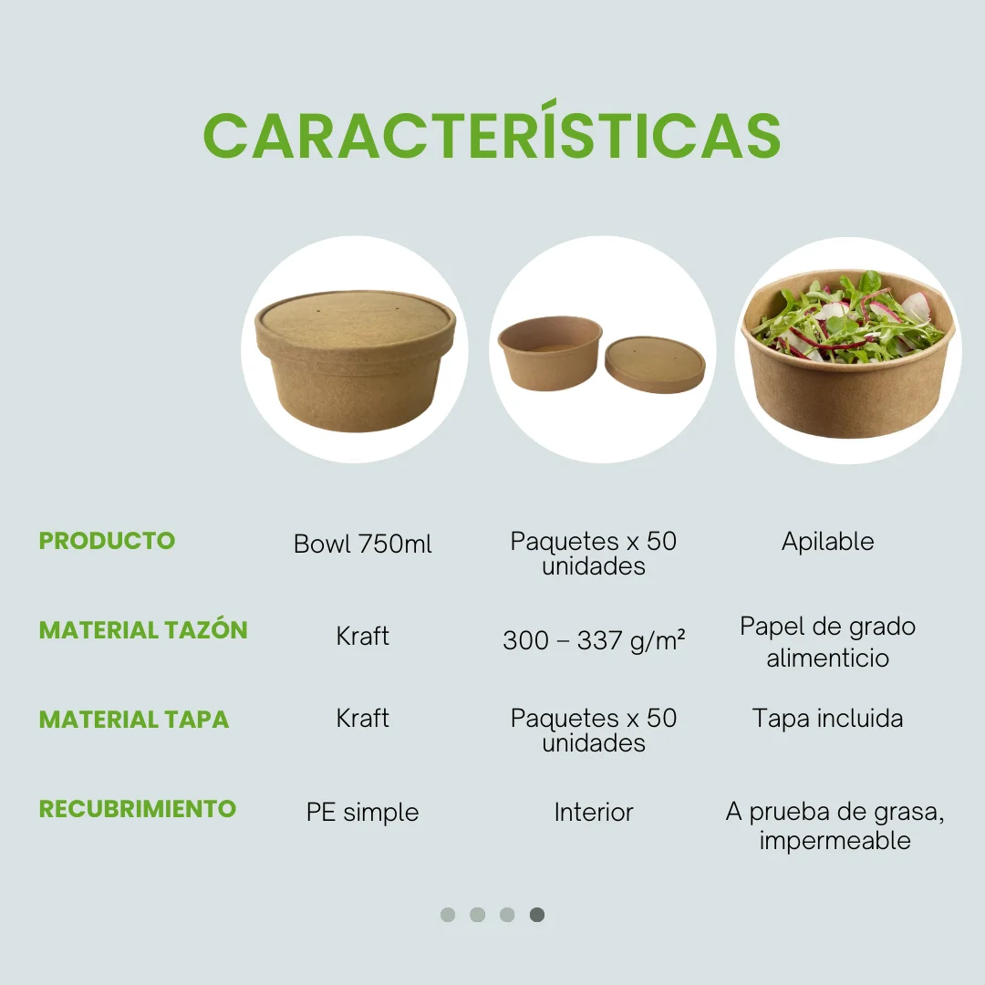 Material Bowl: Cartón kraft marrón de 300 – 337 g/m², papel de grado alimenticio.